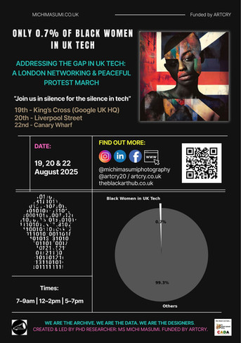 This protest was made possible through funding from ARTCRY, a live fund supporting urgent artistic responses to social and political events. Their support enabled the rapid staging of Coded Out: 0.7% – Everything but Black Women, ensuring that artistic protest could meet the urgency of systemic exclusion in the UK technology sector.
